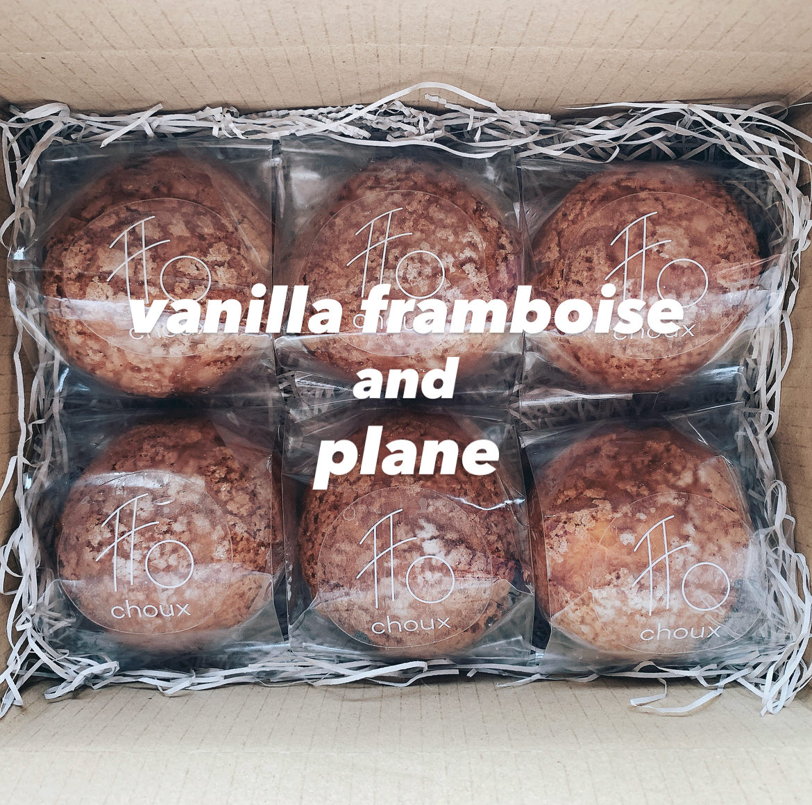 バニラフランボワーズシュークリーム3個とプレーンシュークリーム3個が入ったセットです。限定商品と定番人気商品どちらも楽しんでいただけます。